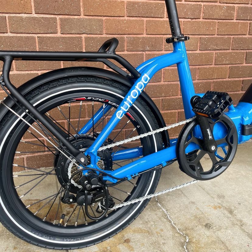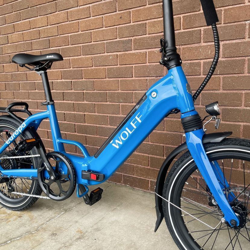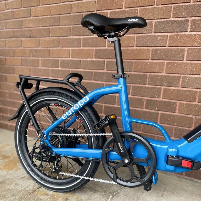 This folding e-bike is perfect for those adventure seekers, students looking for affordable transportation or fulltime travelers. It’s easy to break down and is perfect for those with limited space. It can even fit in the trunk of a car! Whether you are using it to travel to and from class, to explore a new city or just need a compactable bike, EUROPA IS THE ONE! PLUS IT HAS A THROTTLE😜 It’s like a motorized scooter and a bicycle had a baby… šŸ’™Features: Frame: Alu alloy 6061 35cm (14ā€) Fork: Suspension alu alloy Brakes: Tektro disc brakes with bell, cut off function Stem: Promax alu alloy, adjustable Handlebar: Promax allu alloy with qr lever Chainring: 52T 170 mm double plastic cover Shifter: Shimano TX50-7R thumb shifter Freewheel: Shimano 7 speed 11 / 28T freewheel Rear derailleur: Shimano Tourney rear derailleur Tires: Kenda 20ā€ x 2.125 with reflective stripe Rim: Double wall alu alloy 6061 Spokes:Ā StainlessĀ steel